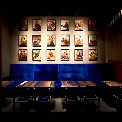 アートと木の温もりが調和するお洒落なダイニングバー「Cafe&Grill SIZZLe GAZZLe 渋谷ヒカリエ店」は、壁一面に飾られた絵画が印象的で、訪れるだけで特別な空間を楽しめます。